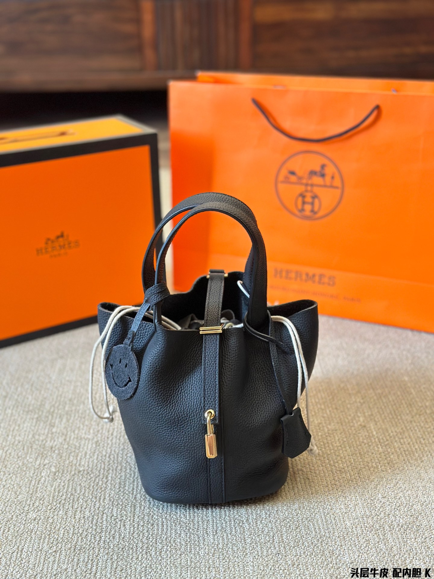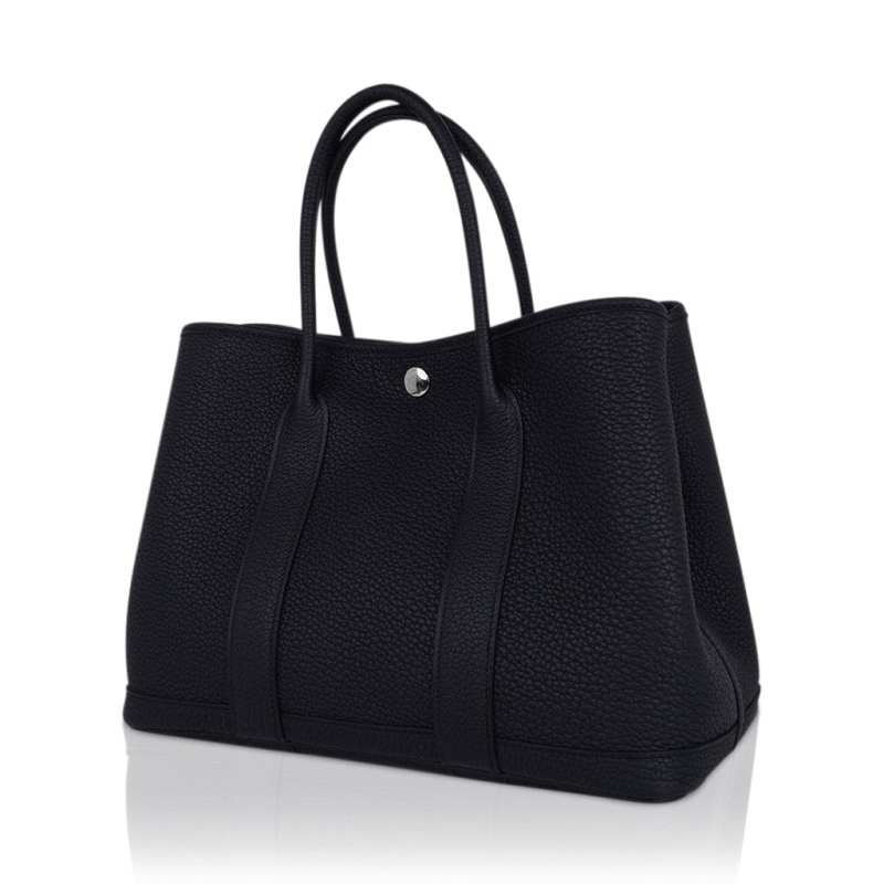 Garden Party 30 Bag Black Vache Country Leather with Palladium Hardware