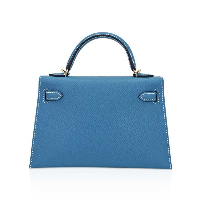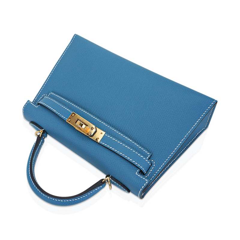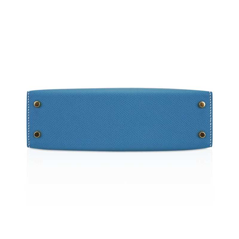 Mini Kelly 20 Bag Sellier New Blue Jean Epsom Leather with Gold Hardware