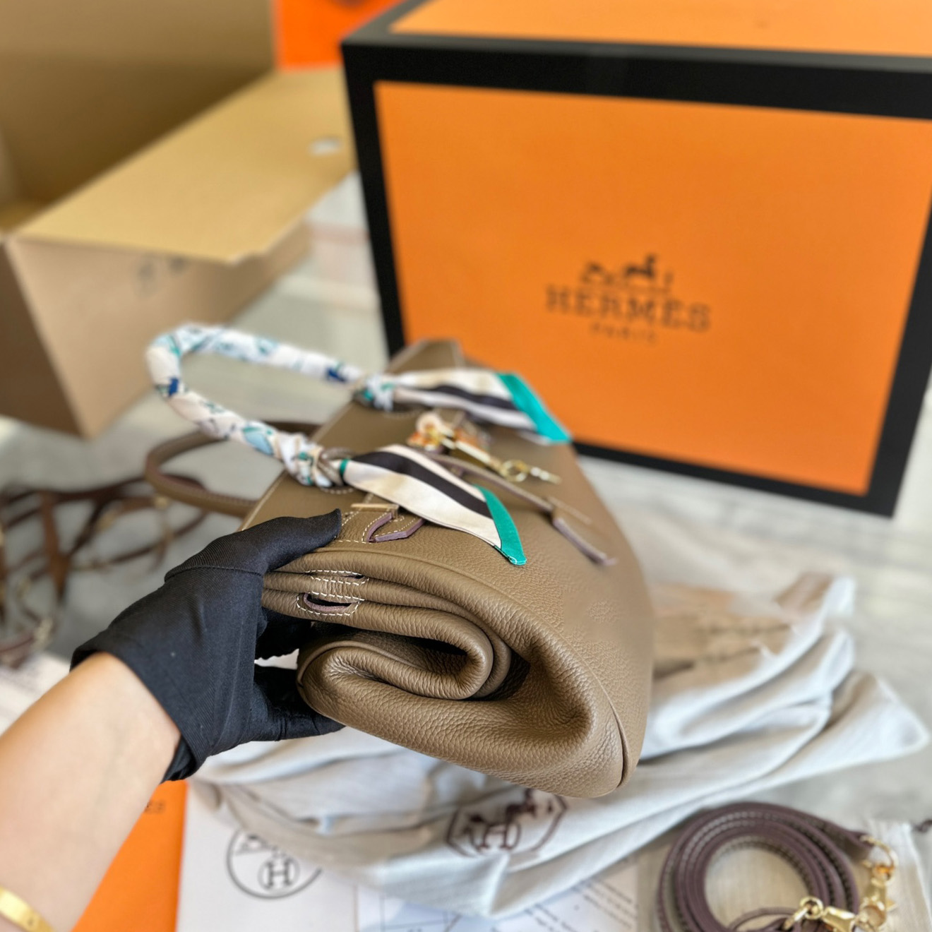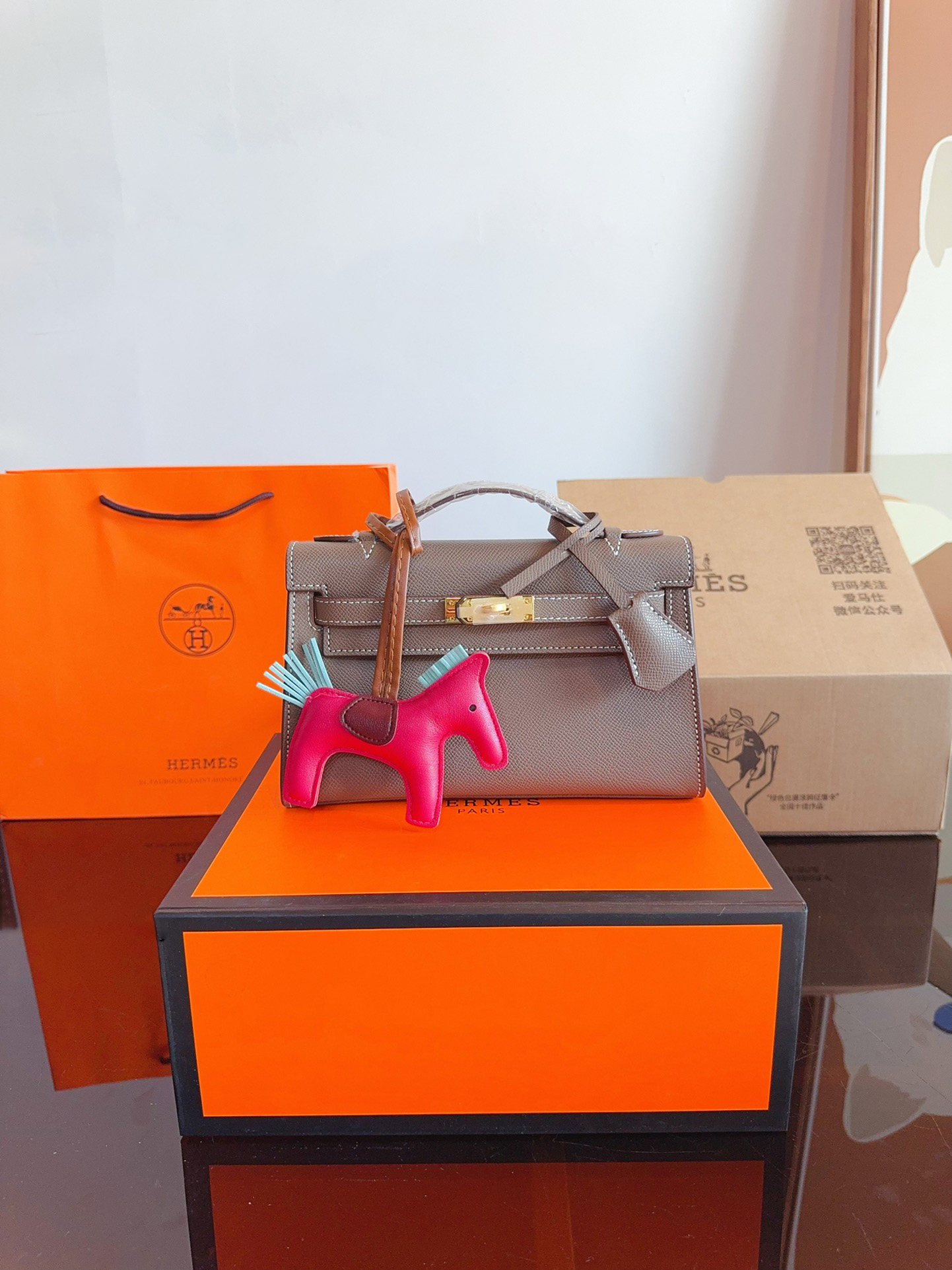 Mini Constance 18 Bag Etain Epsom Leather with Gold Hardware