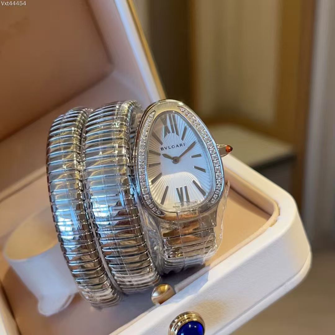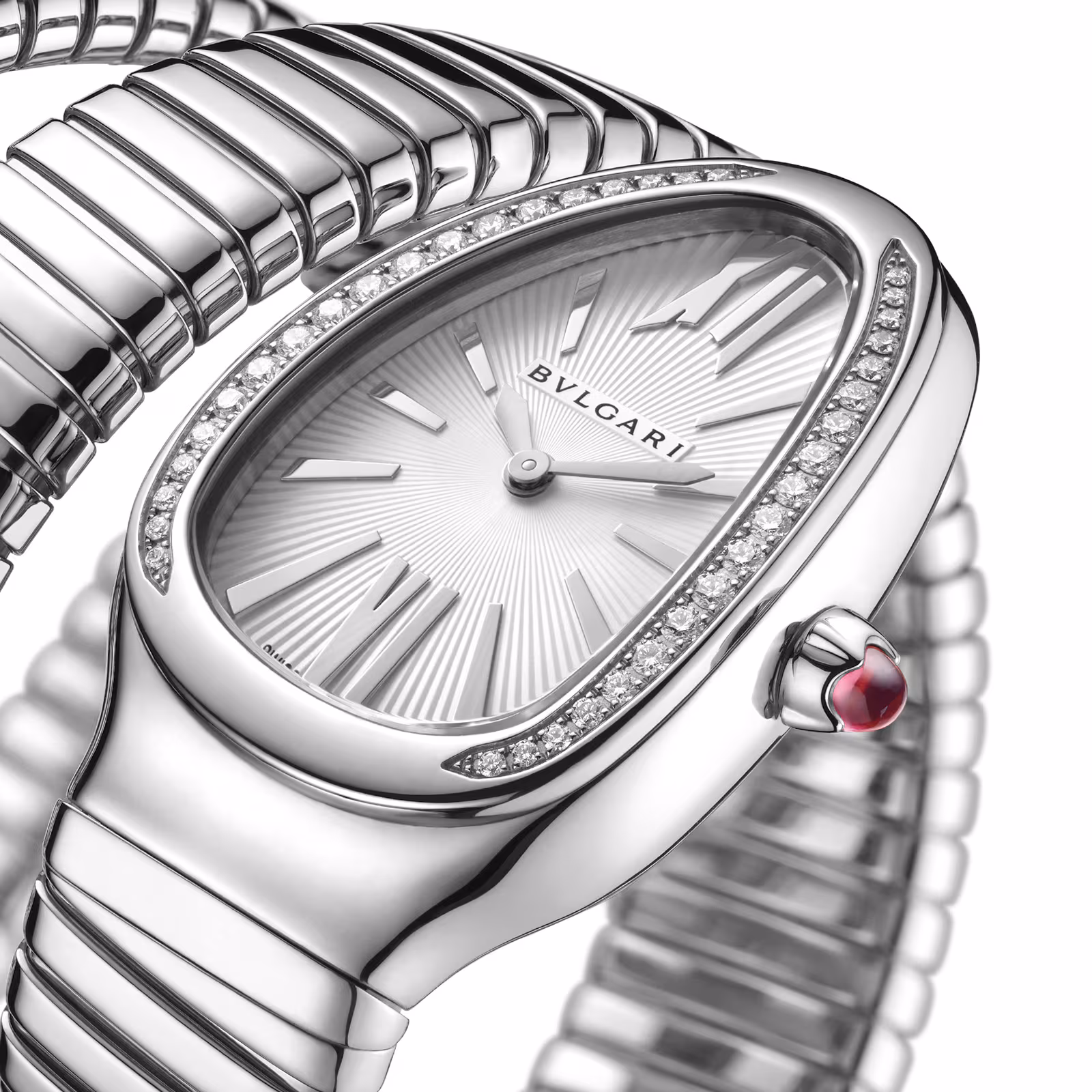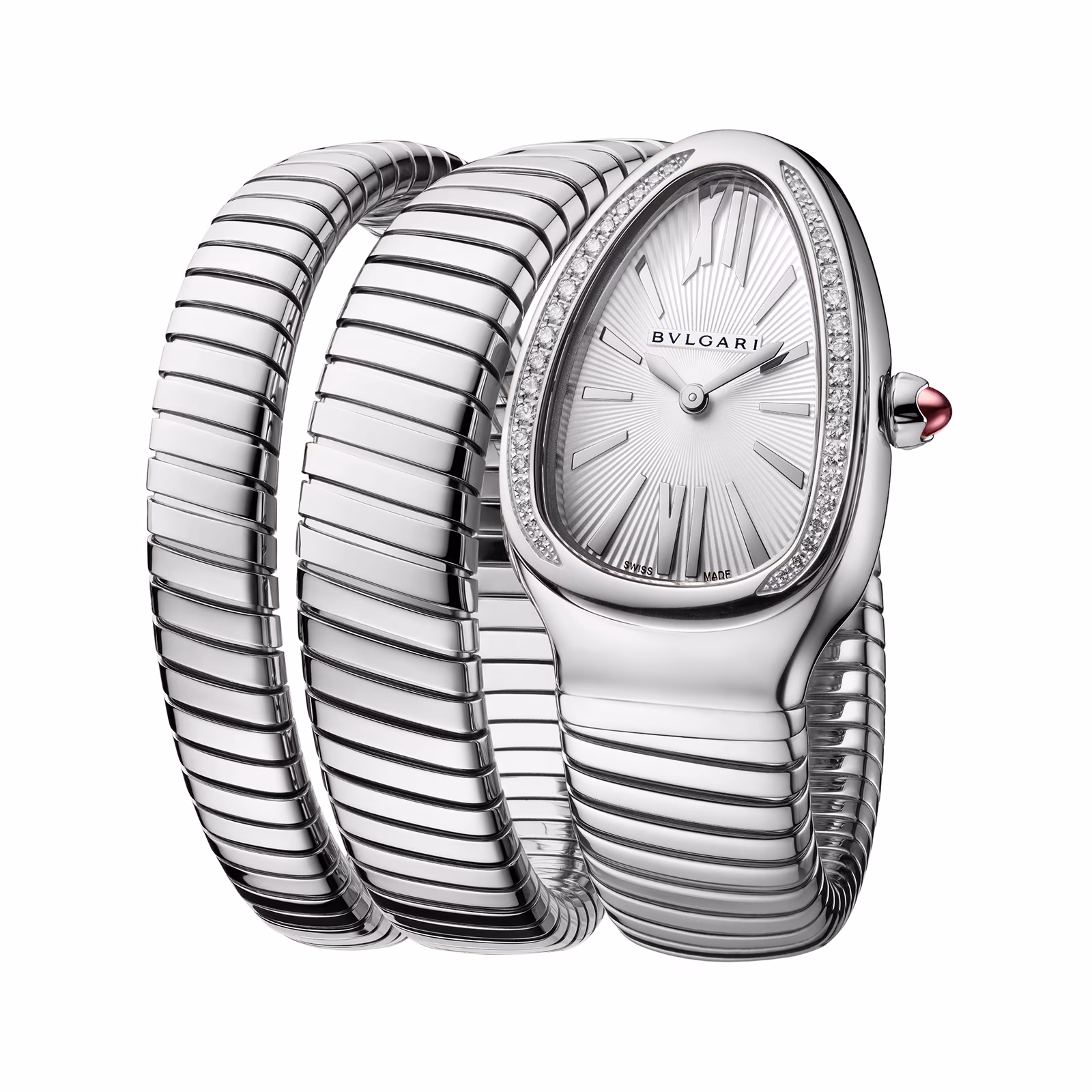 STAINLESS STEEL SERPENTI TUBOGAS 35MM WHITE DIAL DIAMOND LADIES WATCH