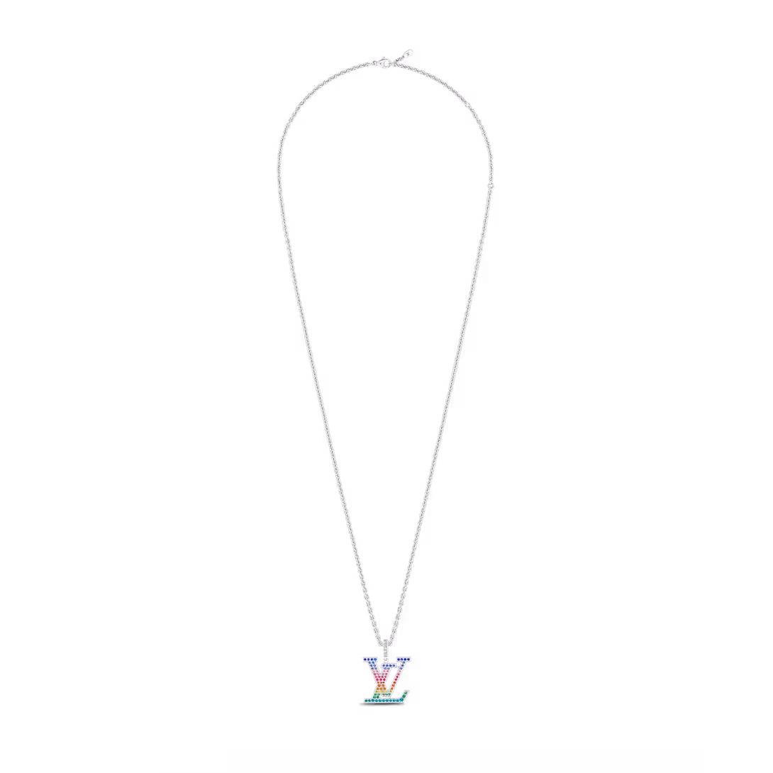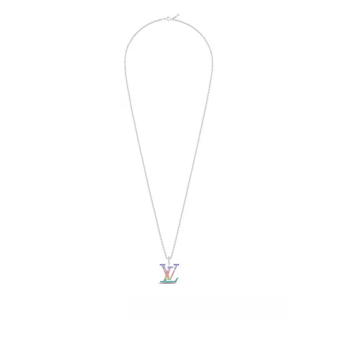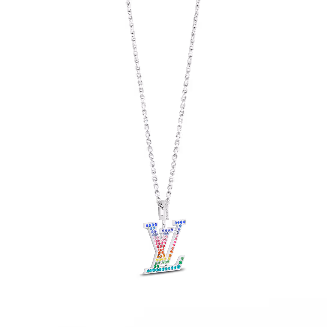 Louis Vuitton LV Large Pendant, White Gold & Rainbow Gemstones Q93897